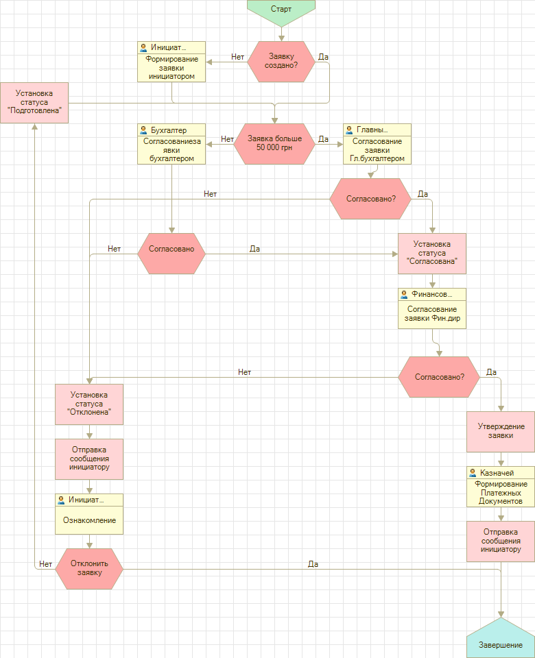 - Настройка вариантов процесса согласования в зависимости от условий в заявке