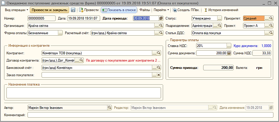 - Автоматическое формирование платежных документов.