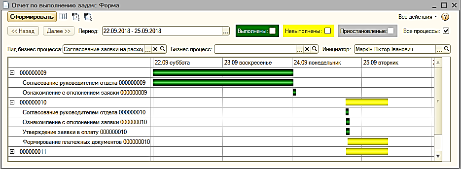 Отчет «Анализ выполнения задач»