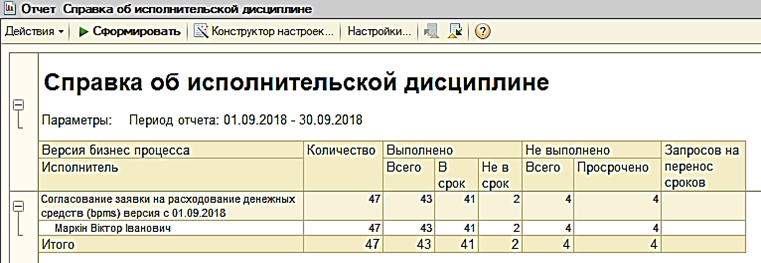 Отчет «Справка об исполнительской дисциплине»