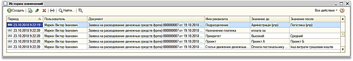 - Все изменения реквизитов согласующим фиксируются в регистре «История изменений»