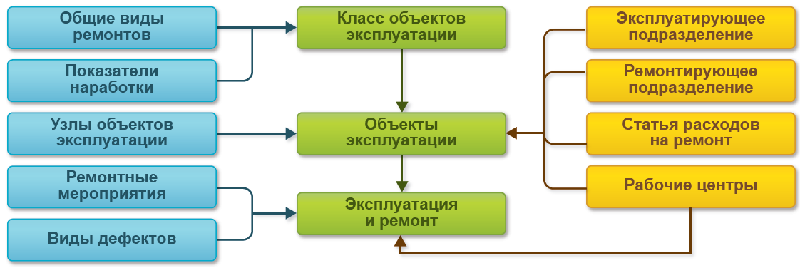 Подсистема позволяет вести справочник объектов ремонта, классифицировать их по признакам общности состава паспортных характеристик, показателей наработки, видов ремонта, режимов эксплуатации. Отслеживается состояние объектов ремонта, а также принадлежность и расположение. Объекты ремонта могут быть вложенными или узлами других объектов ремонта.